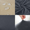 Tecido especial trançado em microfibra de Jacquard Material: 90% Jacquard / 10% Elastano Tamanho: Altura do encosto: 45-55cm Largura do encosto: 38-48cm Comprimento do assento: 38-48cm Altura do assento: 4-10cm
